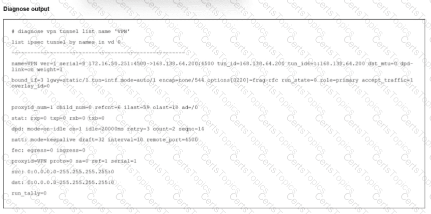 Based on the Fortinet FCSS - Network Security 7.6 documents and the analysis of the VPN tunnel exhibit, here is the verified answer.