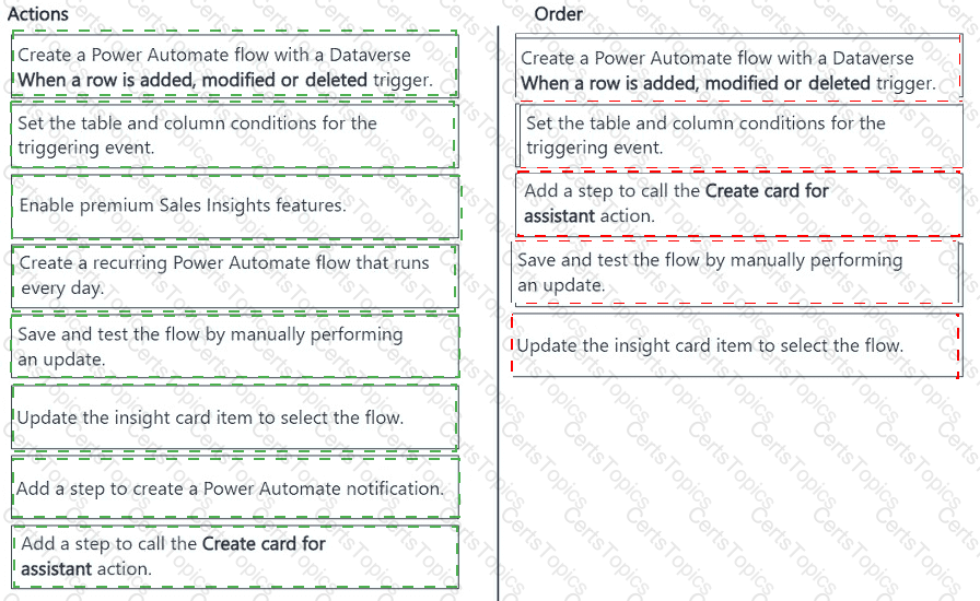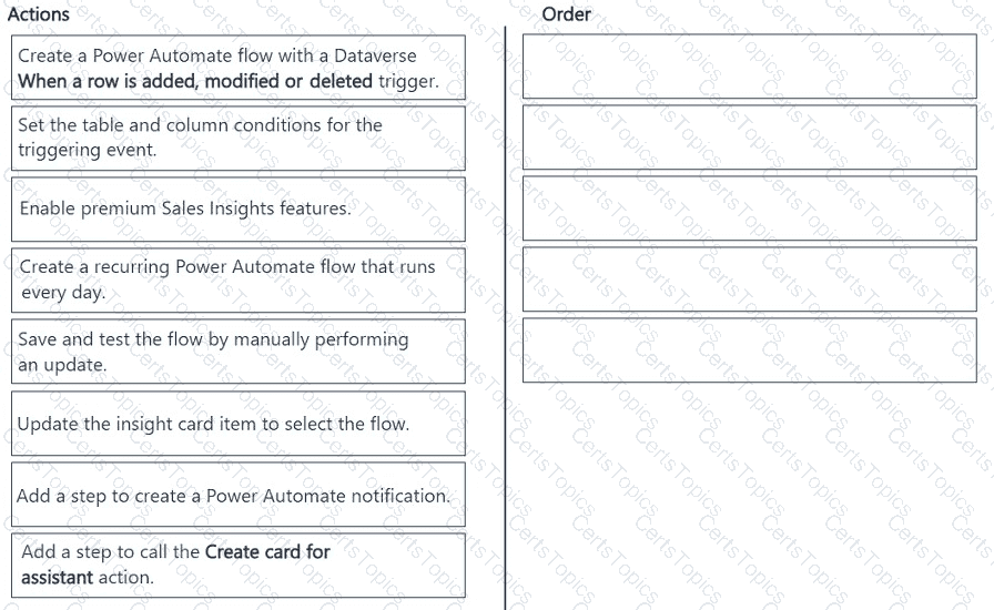 Which five actions should you perform in sequence? To answer, move the five appropriate actions from the list of actions to the answer area. Arrange the five actions in the correct order.