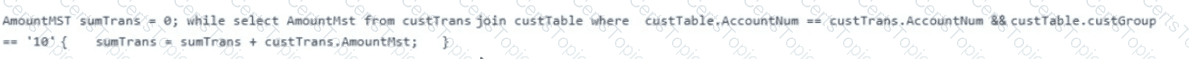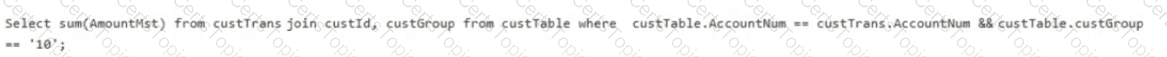 You are performing a review of the code that returns the total sum of transactions for all customers in customer group 10. You observe that the following query takes a long time to complete.