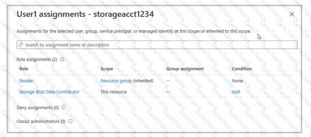 You have an Azure subscription that contains a storage account named storageacct1234 and two users named User1 and User2.