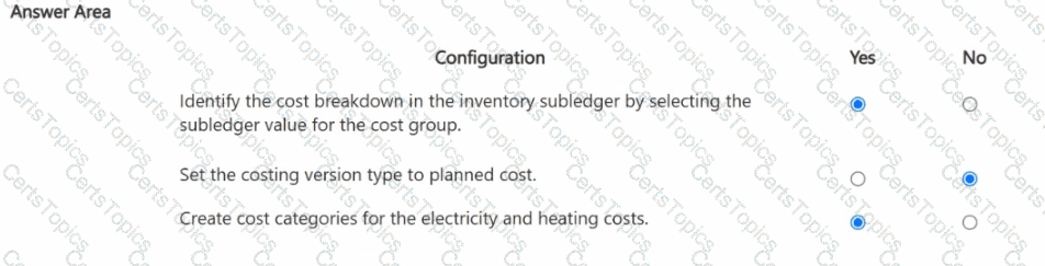 How should you complete the costing sheet configuration? To answer, select the appropriate options in the answer area.