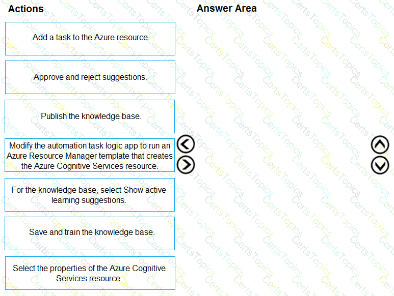 Which four actions should you perform in sequence? To answer, move the appropriate actions from the list of actions to the answer area and arrange them in the correct order.