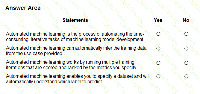 For each of the following statements, select Yes if the statement is true. Otherwise, select No.