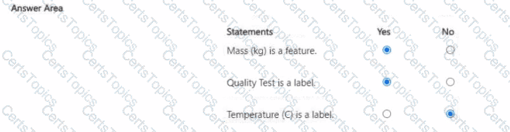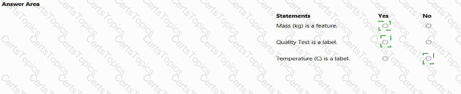 You have an Azure Machine Learning model that predicts product quality. The model has a training dataset that contains 50,000 records. A sample of the data is shown in the following table.
