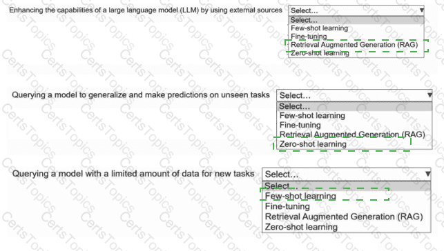 Select the correct technique from the following list of use cases. Each technique should be selected one time or not at all. (Select THREE.)