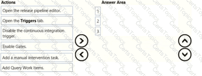 Which three actions should you perform in sequence? To answer, move the appropriate actions from the list of actions to the answer area and arrange them m the correct order.