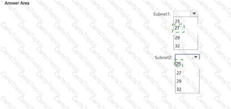 How many IP addresses will be available on each subnet once the planned actions are complete? To answer, select the appropriate options in the answer area.