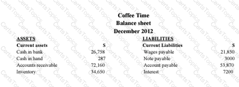 Use the balance sheet below to work out the correct ratio for coffee Time and explain whether the company appears to have enough assets to cover it liability.