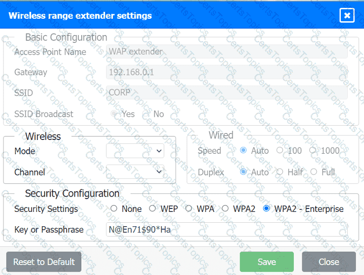 Ensure the SSID is set to "CORP" as shown in the exhibit.
