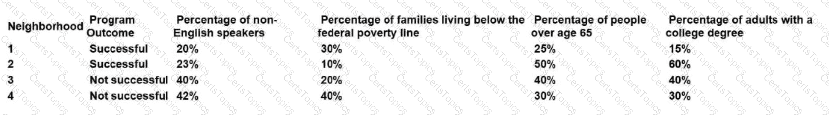 A program to improve individuals' dietary habits has had success in some neighborhoods but not others. Based on the data (higher poverty and non-English speakers correlate with lower success), what is an approach that would make the program successful in more neighborhoods?