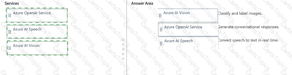 To answer, drag the appropriate service from the column on the left to its capability on the right. Each service may be used once, more than once, or not at all.