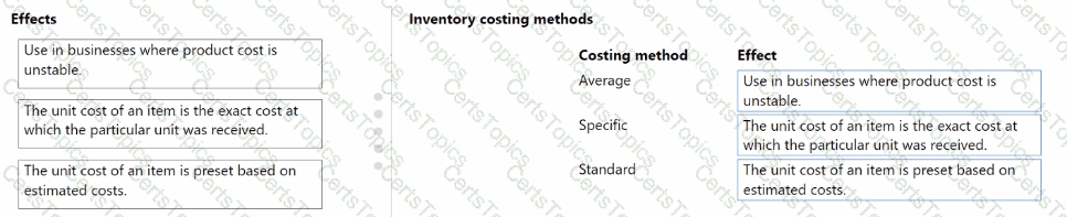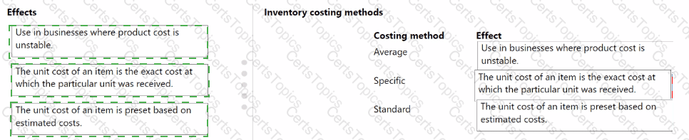 What should you describe for each costing method? To answer, move the appropriate effect to the correct costing method. You may use each effect once, more than once, or not at all. You may need to move the split bar between panes or scroll to view content.