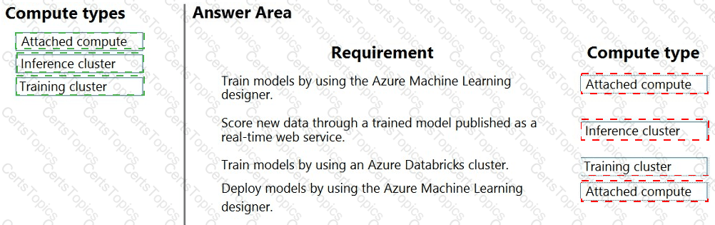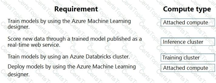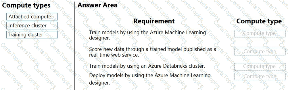 Which compute types should you select? To answer, drag the appropriate compute types to the correct requirements. Each compute type may be used once, more than once, or not at all. You may need to drag the split bar between panes or scroll to view content.
