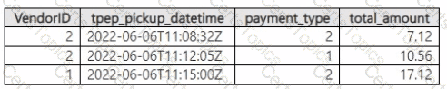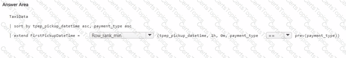 You have a Fabric eventhouse that contains a KQL database. The database contains a table named TaxiData that stores the following data.