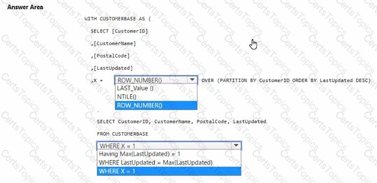 You have a data warehouse that contains a table named Stage. Customers. Stage-Customers contains all the customer record updates from a customer relationship management (CRM) system. There can be multiple updates per customer