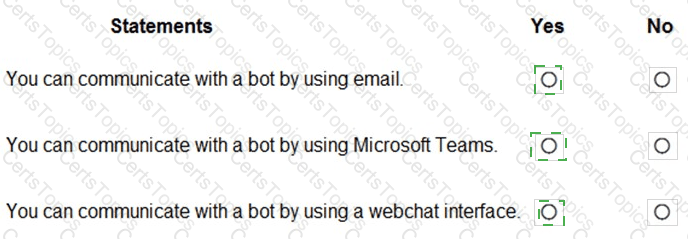 For each of the following statements, select Yes if the statement is true. Otherwise, select No.