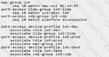 The test device is being assigned to the ‘’lot-dev’' role However, the customer requires the "lot-prod’’ role be applied.