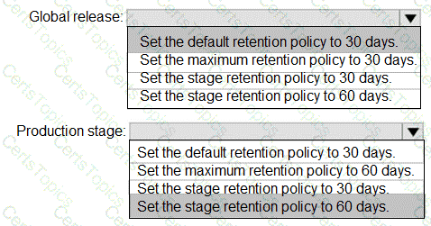 How should you configure the release retention policy for the investment planning applications suite? To answer, select the appropriate options in the answer area.