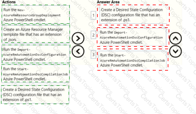 Which three actions should you perform in sequence? To answer, move the appropriate actions from the list of actions to the answer area and arrange them m the correct order.