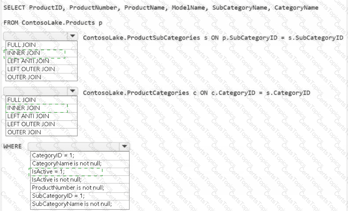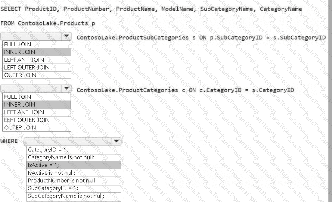 How should you complete the Apache Spark SQL code? To answer, select the appropriate options in the answer area.