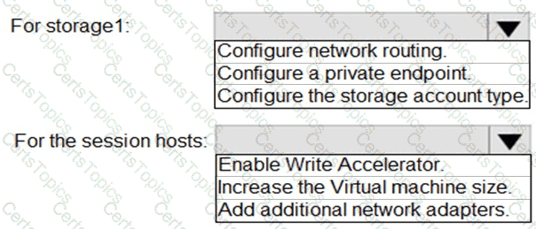 You need to configure the session hosts and storage1 to minimize network latency when loading and updating profiles.