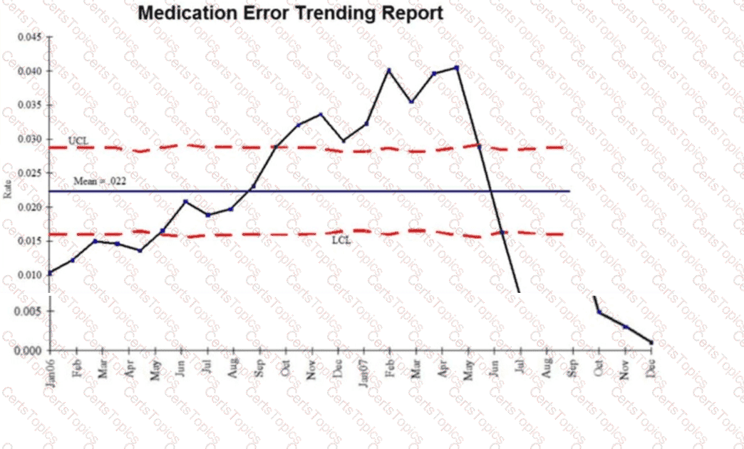 A Pharmacy and Therapeutics Committee has reviewed the following control chart for presentation to a governing body: