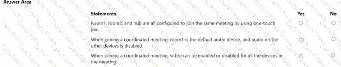 The deployment contains a Teams Rooms on Windows device named room1@contoso.com that has the following configurations.