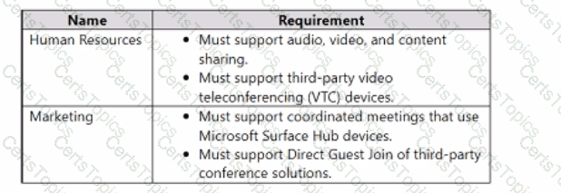 You have two teams that have meeting room requirements as shown in the following table.