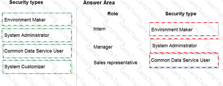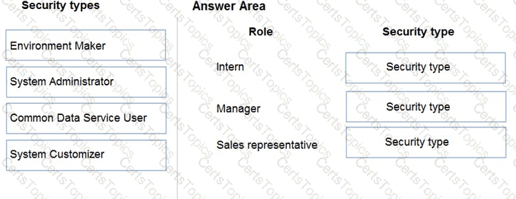 Which security roles should you use? To answer, drag the appropriate security types to the correct roles. Each security type may be used once, more than once, or not at all. You may need to drag the split bar between panes or scroll to view content.