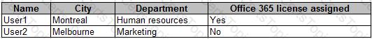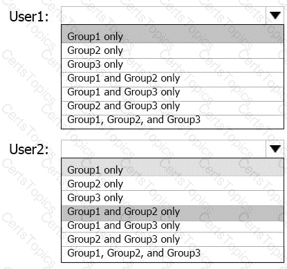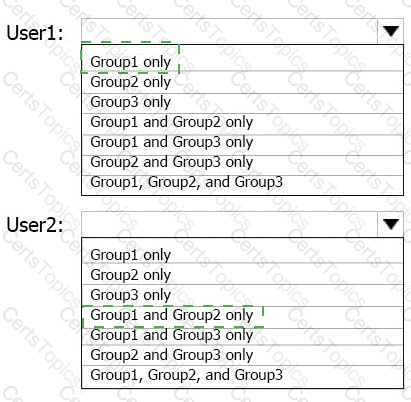 To which groups do User1 and User2 belong? To answer. select the appropriate options in the answer area.