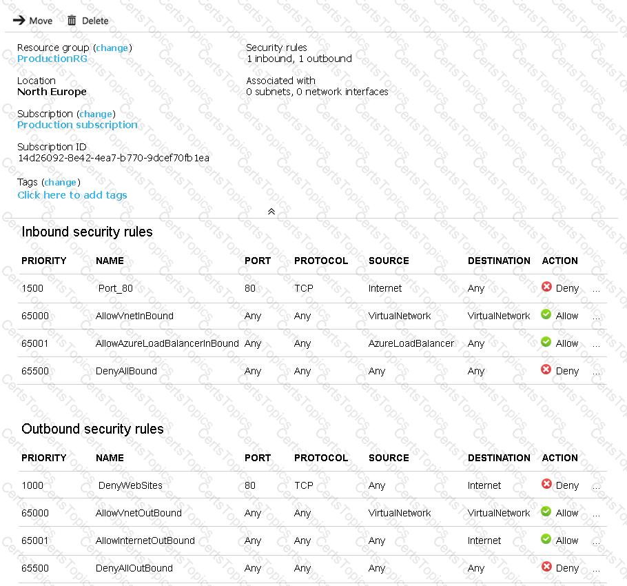 VM1 and VM2 are deployed from the same template and host line-of-business applications accessed by using Remote Desktop. You configure the network security group (NSG) shown in the exhibit. (Click the Exhibit button.)