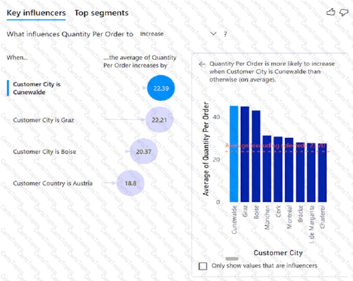 You are using the key influencers visual to identify which factors affect the quantity of items sold in an order.