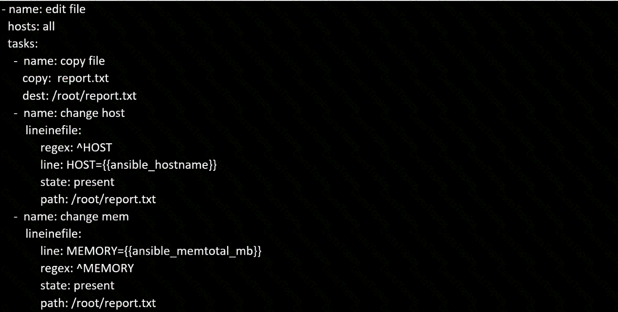 Create a file in /home/sandy/ansible/ called report.yml. Using this playbook, get a file called report.txt (make it look exactly as below). Copy this file over to all remote hosts at /root/report.txt. Then edit the lines in the file to provide the real information of the hosts. If a disk does not exist then write NONE.