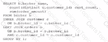 Which query would return a list of all brokers, a count of the customers each broker has. and the total order amount of their customers (as shown below)?