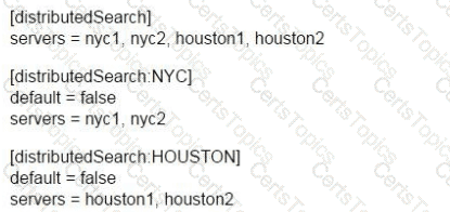 How would you configure your distsearch conf to allow you to run the search below? sourcetype=access_combined status=200 action=purchase splunk_setver_group=HOUSTON