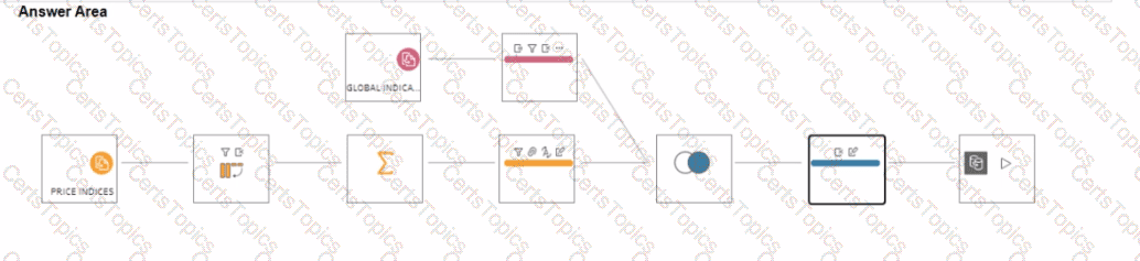You have a Tableau Prep flow that joins a dataset named Global Indicators to a dataset named Price Indices.