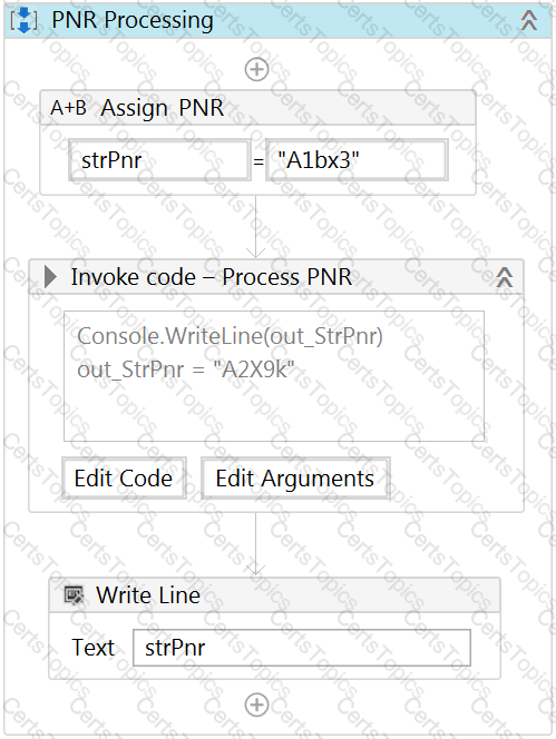 You are invoking a workflow file called SecondaryWorkflow.xaml from PrimaryWorkflow.xaml. The following shows the Import Arguments panel of the Invoke Workflow File activity: