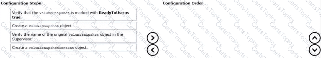 Drag and drop the four configuration tasks Into the correct order from " Configuration Steps " on the left and place them into the " Configuration Order " on the right. (Choose four.)