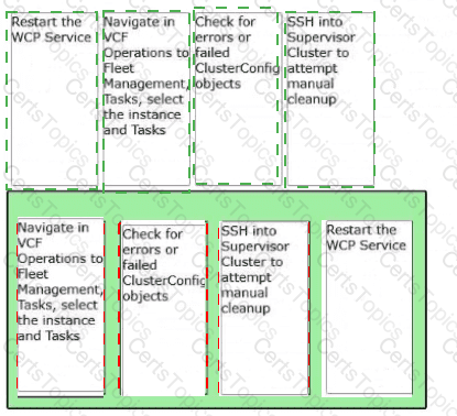 An administrator upgrades a VMware Cloud Foundation (VCF) Supervisor and the upgrade fails. Order the steps the administrator should take to determine the cause of the failure.