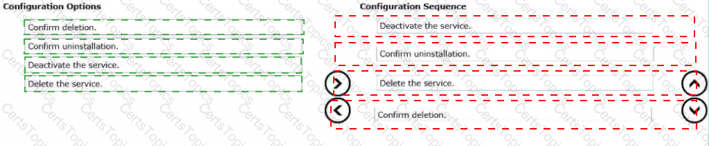 Drag and drop the four tasks into the correct order from Configuration Options on the left and place them into the Configuration Sequence on the right. (Choose four)